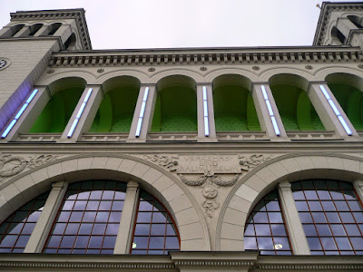 a converted C19 railway station in neoclassical style - its facade now